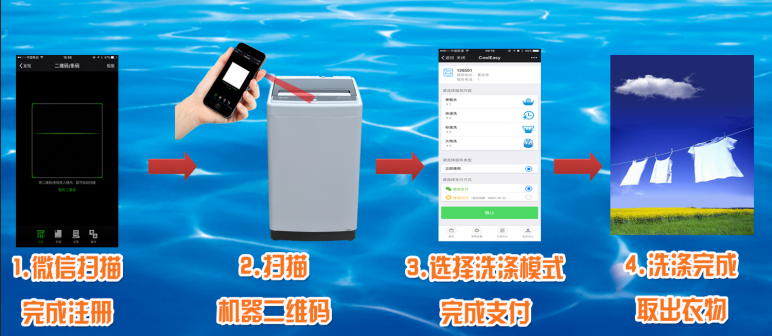 互聯(lián)網(wǎng)O2O自助洗衣機(jī),即用戶通過手機(jī)客戶端來了解洗衣房的運(yùn)轉(zhuǎn)狀態(tài),可以提前預(yù)約洗衣操作。通過掃碼連接相應(yīng)的洗衣機(jī),可以自由選擇洗衣模式,實(shí)時查詢洗衣進(jìn)度,通過手機(jī)接收實(shí)時提醒,用戶可以通過客戶端來在線完成支付。