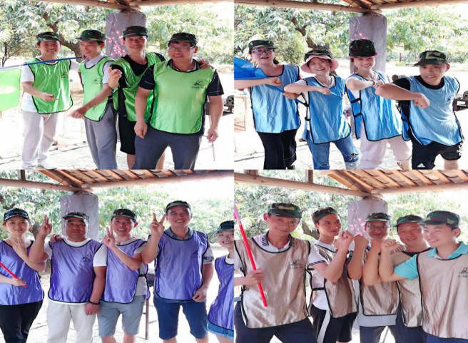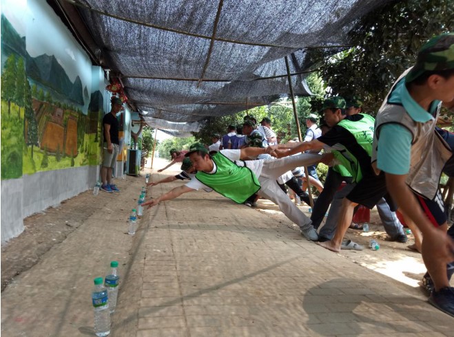 到達嶺前生態園拓展基地后,大家被分成紅、黃、藍、白、橙、綠六隊,并通過各小組的一番頭腦風暴,產生了各富特色的隊名和一首首旋律高亢的隊歌。伴隨著“星星隊”、“驕陽隊”、“甜蜜暴擊隊”、”火箭隊”等多個個性鮮明團隊的組成,在充滿豪情壯志、嘹亮的團隊隊歌下,公司拓展訓練活動拉開了序幕。