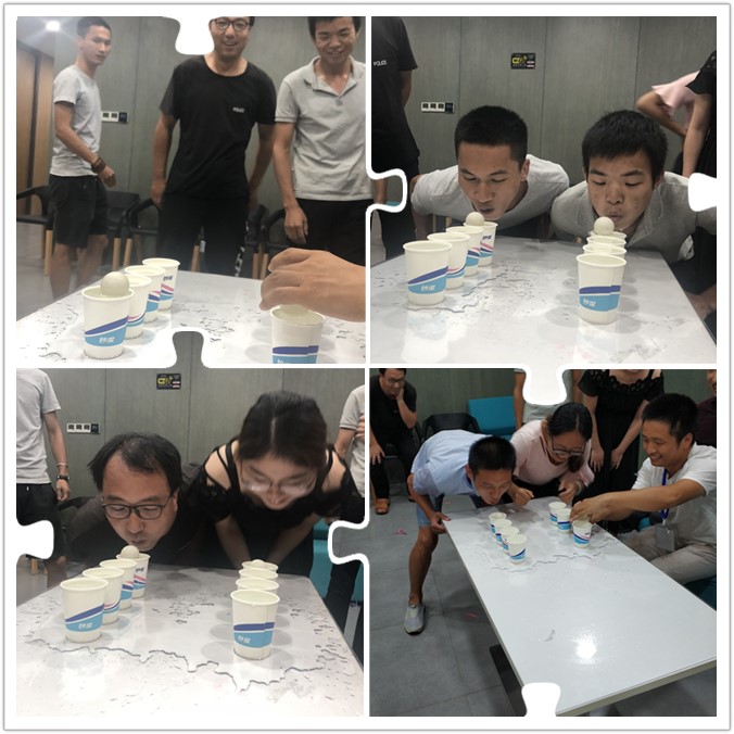 活動在公司食堂舉行,通過抽簽的方式,大家被分為A/B兩個小組,通過各小組的激烈討論,產生了各富特色的隊名并通過投票選出了各隊的隊長。在每隊斗志昂揚的口號聲中,“中秋月”拓展活動拉開了序幕。